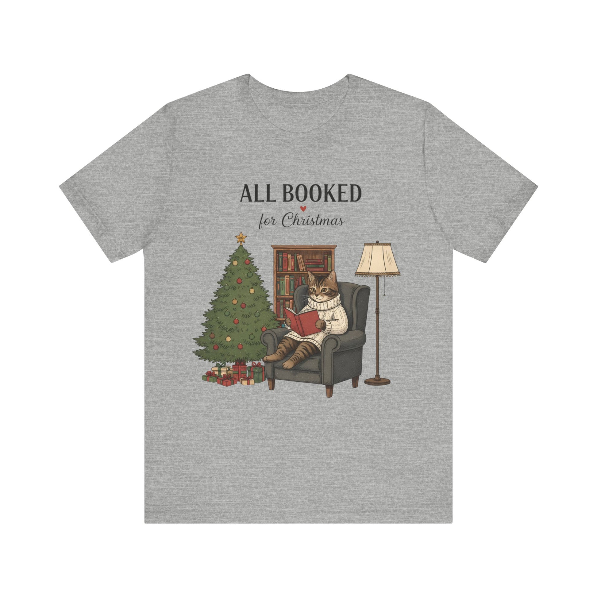All Booked for Christmas T-Shirt — Cozy Reading Cat Holiday