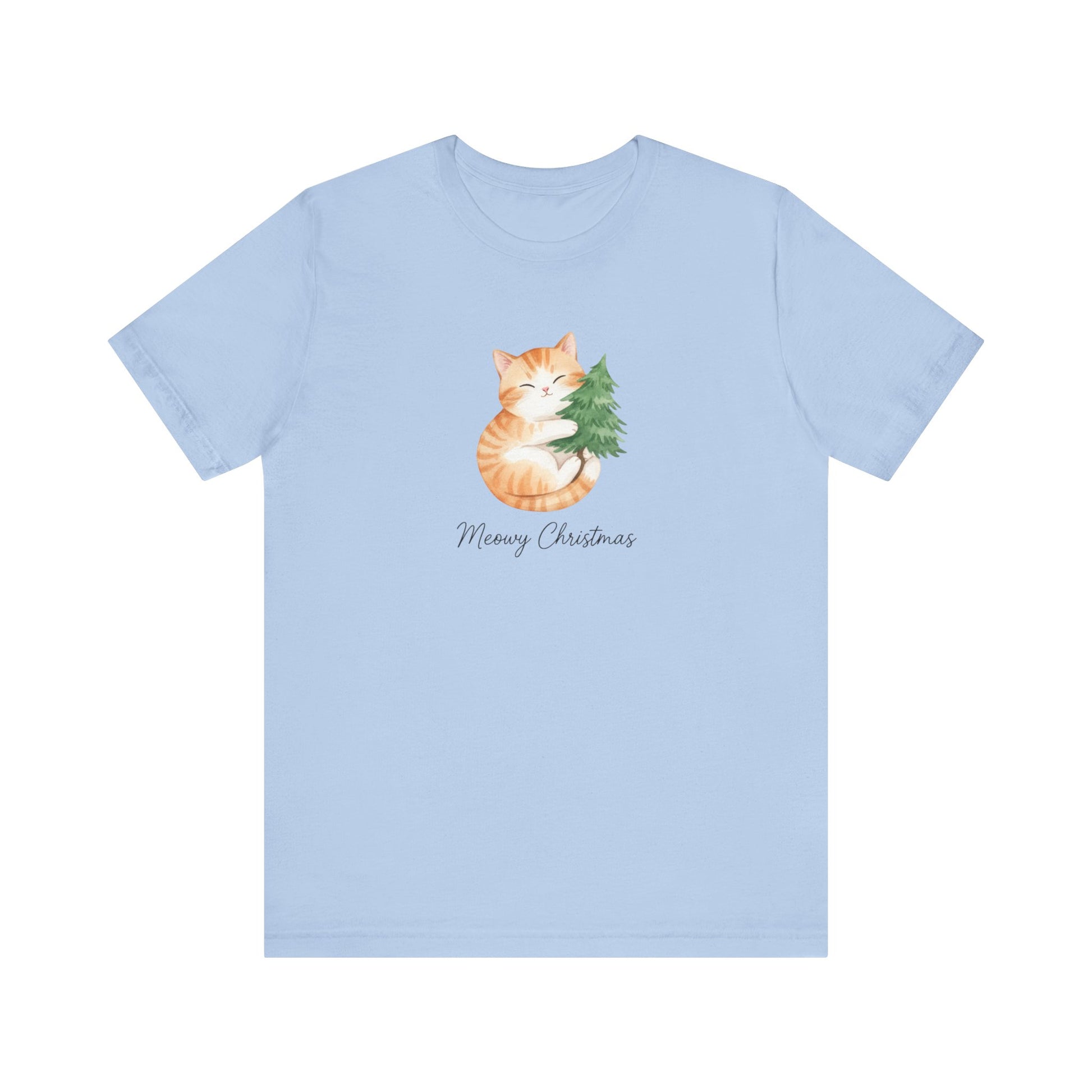 Soft, breathable, and quietly festive — this lightweight tee carries a small watercolor illustration of a curled ginger cat cuddling a little Christmas tree. The image sits low on the chest with delicate handwritten lettering beneath, making the design feel like a secret snapshot from a cozy winter morning. It layers easily under a cardigan or wears alone when you want your holiday look to be gentle rather than loud. The crew neck and retail fit keep the silhouette neat for everyday wear, while the tear-away label and premium combed cotton ensure comfort close to the skin.